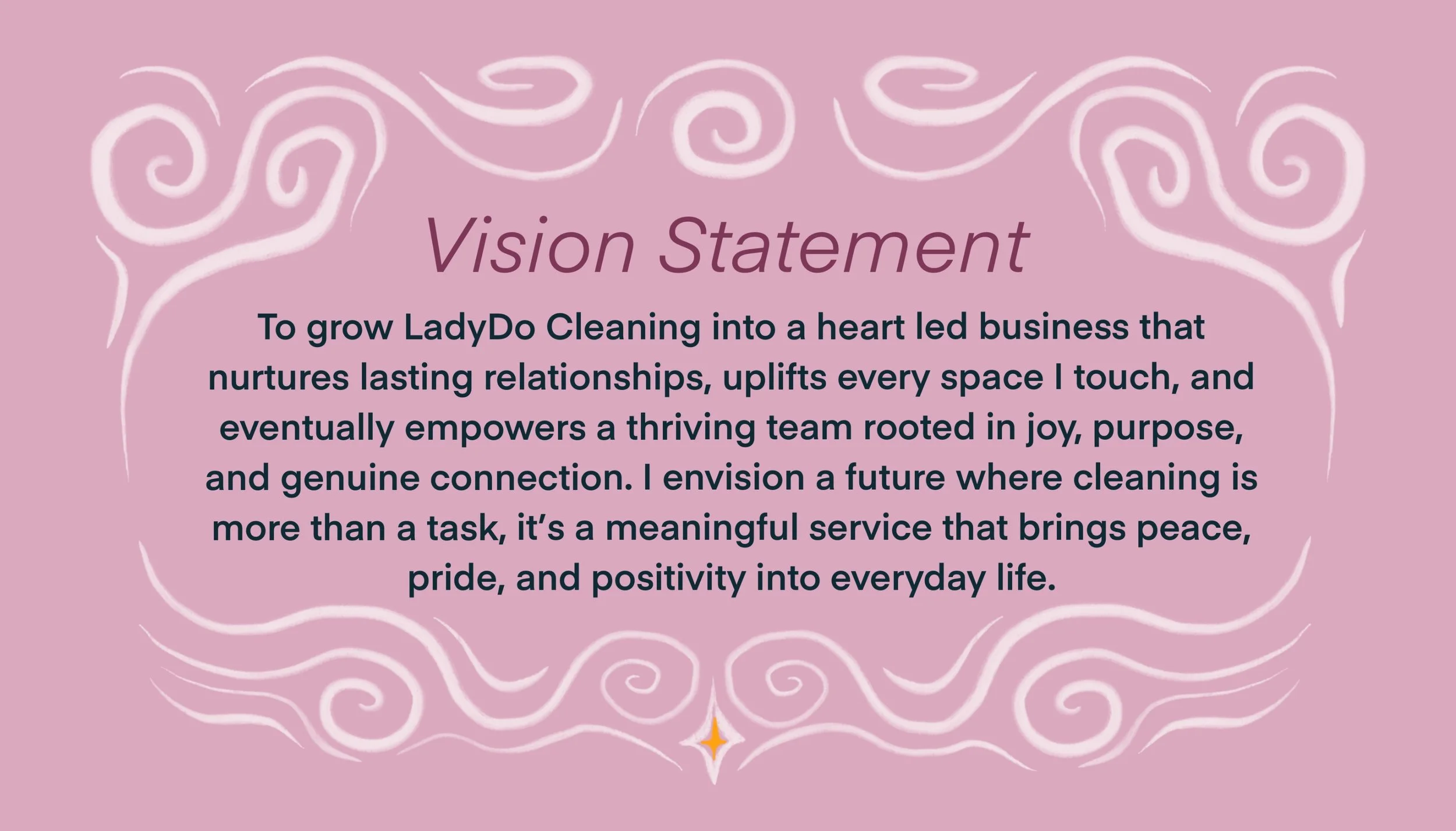My mission is to bring comfort, calm, and joy to my clients, while building a business that will one day support a strong, healthy team. For now, I’m proud to be doing it solo, growing steadily, and cleaning with heart.